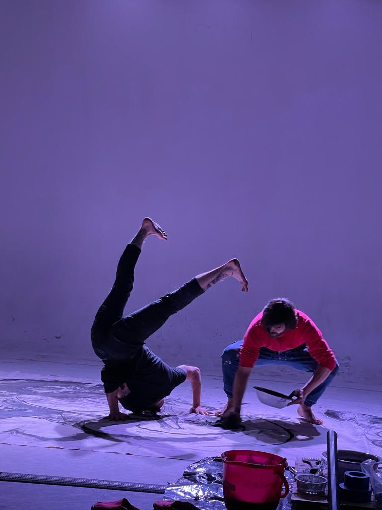 Dans la performance “some dance to remember, some dance to forget “, Fadesha et Saunak Mahbubani sont allongé-e-s sur un lit dans une scène intime d’un couple : se parlant, mangeant, s’embrassant en arrière fond défile le texte de la loi de protection “THE TRANSGENDER PERSONS (PROTECTION OF RIGHTS) ACT, 2019” qui donne enfin une reconnaissance des droits aux personnes transgenres.